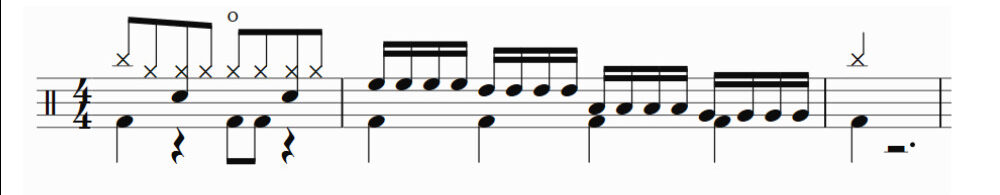 因みに申し訳ないのですが、筆者のドラム音源にはフロアタムが無かったため、フロアタムの部分はバスドラムで演奏しています。