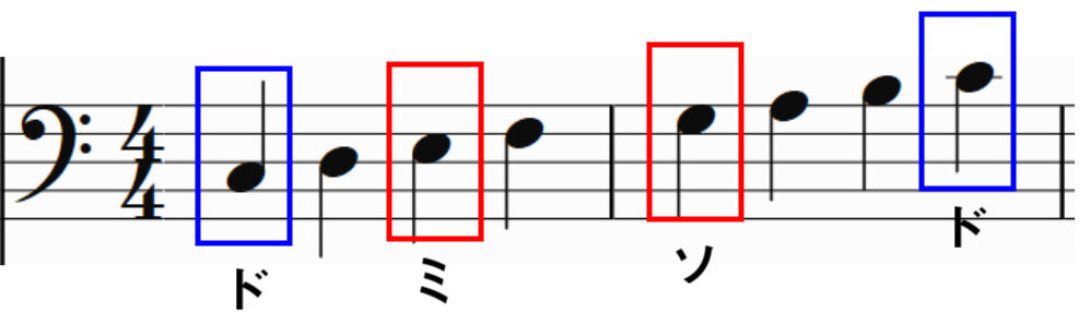 これは「ドレミファソラシド」の楽譜ですが、どこがどの音か分からないですよね!では次の図を見てください!