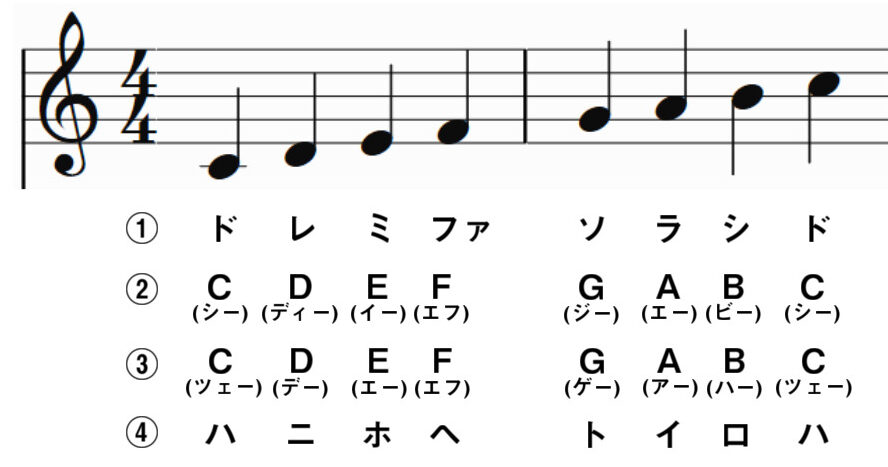 日本では通常どのジャンルやスタイルでも「ドレミファソラシド」を使いますが、演奏する楽曲や編成によってはそれぞれの読み方で読むこともありますので、自身のやっている・やりたいジャンルの物を最低でも2つは覚えておきたいところです!
