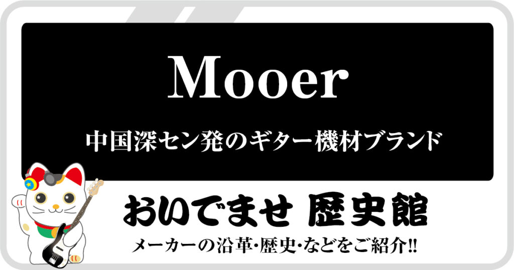 Mooer Audio(通称 Mooer)は 中国・深センで2010年に設立されたギター/ベース用エフェクターと音響機器のメーカーです。設立以来「小さいけれど高性能」というコンセプトで世界中のミュージシャンから支持を集めています。社名はShenzhen Mooer Audio Co., Ltd. で、主にエフェクターやマルチエフェクト、アンプ、ギター関連機器を手がけています。