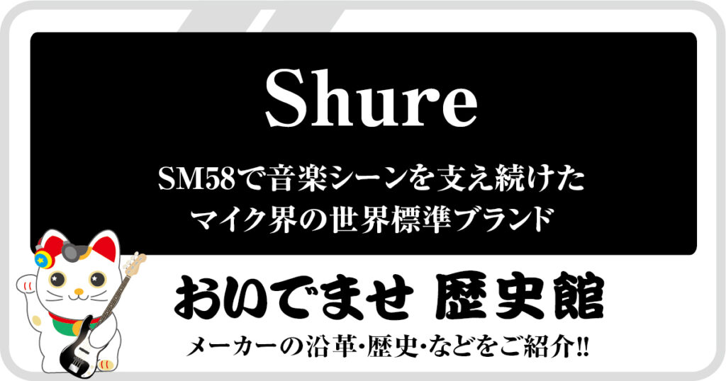 Shureは、1925年創業の老舗でありながら、今なお「現場で選ばれる理由があるブランド」です。Shureが単なる昔ながらの会社ではなく、100年にわたり音響技術を牽引してきた企業であることがわかります。